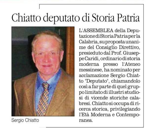 21.12.2013 15:47Il nostro socio ordinario Sergio Chiatto, già membro della Deputazione di Storia patria, nominato Deputato- Vivissime congratulazioni ! Nella sezione "Pagine di critica" pubblichiamo un suo intervento sulla storia di Aiello